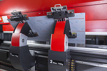 Der automatische Werkzeugwechsler verkürzt die Rüstzeit drastisch. Im Vergleich zu konventionellen Anlagen verkürzt sich die Rüstzeit auf ein bis drei Minuten. Damit eignet sich die HG-2204 ATC perfekt für komplexe Bauteile in Losgrößen ab Stückzahl eins mit entsprechend häufigen Werkzeugwechseln. Per Knopfdruck kann in höchster Präzision und Reproduzierbarkeit das Abkanten beginnen – manuell, halb- oder vollautomatisch.