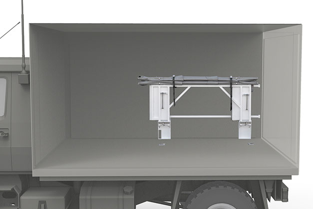 Nottragenlagerung zur Seitenwand klappbar für DIN-Tragen