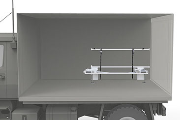 Die Tragenlagerung Easy-Flex ist für alle gängigen Fahrtragen der Hersteller Stollenwerk, Ferno usw. geeignet. Sonderfahrtragen müssen speziell angepasst werden. In Verbindung mit einer Beladeklappe ist die Funktion der Ausfahrsicherung nicht möglich. Das Lochbild der Bodenbefestigung an der Tragenlagerung ist auch für Airline-Schienen lieferbar. Dies ermöglicht das schnelle Entnehmen der Tragenlagerung aus dem Fahrzeug bei Nichtgebrauch. Die komplette Tragenlagerung ist aus nichtrostendem Stahl gefertigt, was eine lange Lebensdauer bedeutet und zusätzlich für Desinfektionsmaßnahmen bestens geeignet ist. Die Linearführung der Tragenlagerung Easy-Flex erfolgt mit zwei Kunststoff-Halbschalen (Rollen), die ein Edelstahlrohr Ø 42,5 mm komplett umschließen. Somit ist ein Herausspringen des Oberteils unmöglich.